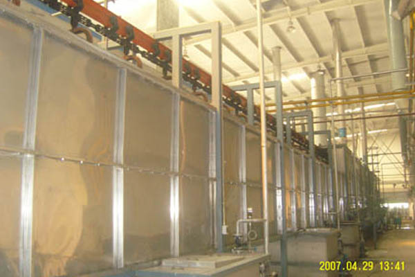 2、前處理生產線各工序噴淋管布置在隧道內,噴淋由各液槽的泵來提供。